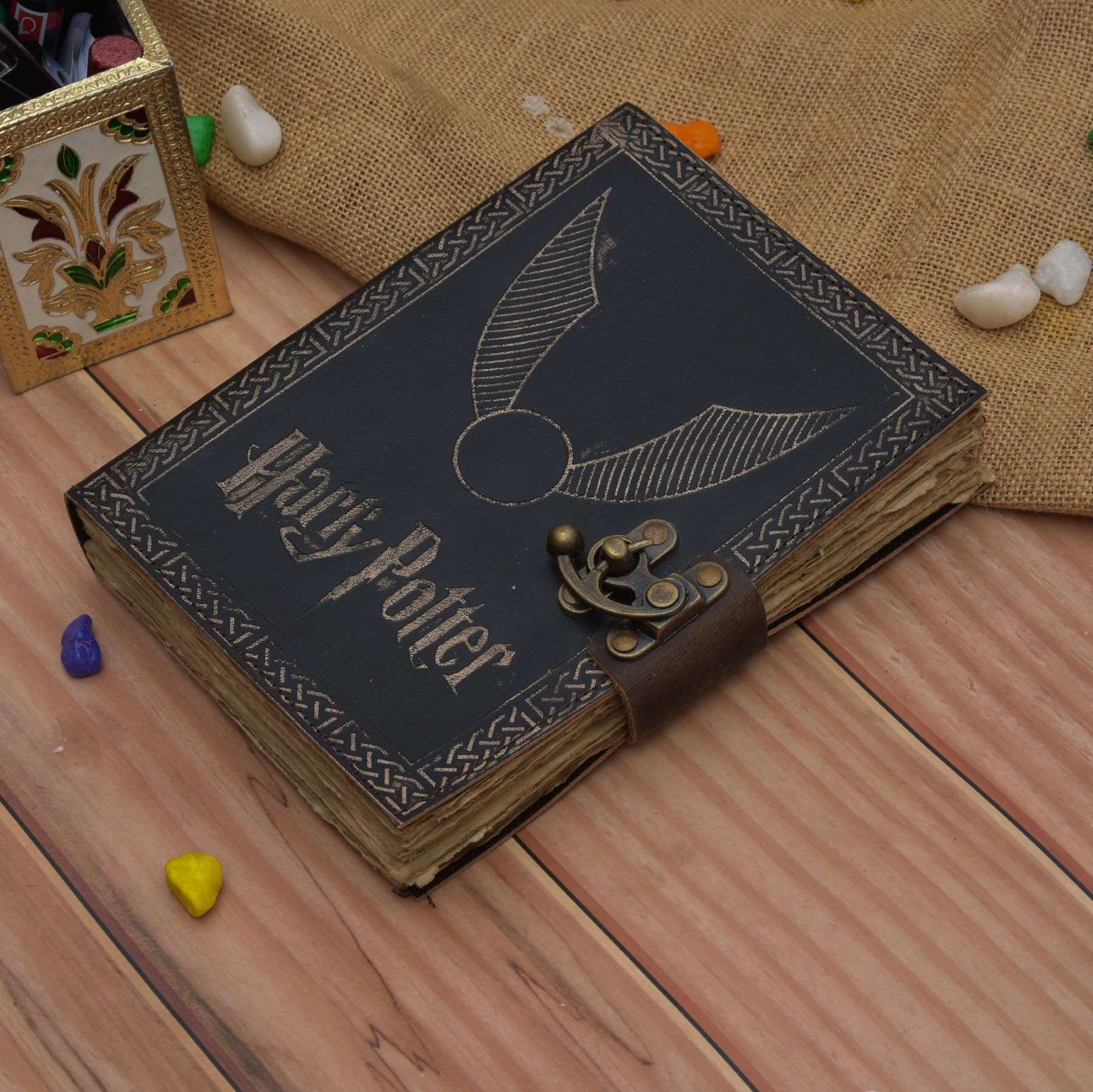 vintage handmade leather journal. Crafted with genuine leather, it radiates authenticity and charm, perfect for those who appreciate classic craftsmanship. The premium antique lock closure adds a touch of elegance and security, ensuring your thoughts and memories are safeguarded within its pages. Inside, you’ll discover 200 brown handmade pages, providing ample space for your musings, sketches, and stories to unfold. Whether it’s for journaling, sketching, or planning, this versatile journal is a timeless companion for your creative endeavors. Treat yourself or a loved one to this exquisite piece, a celebration of tradition and creativity