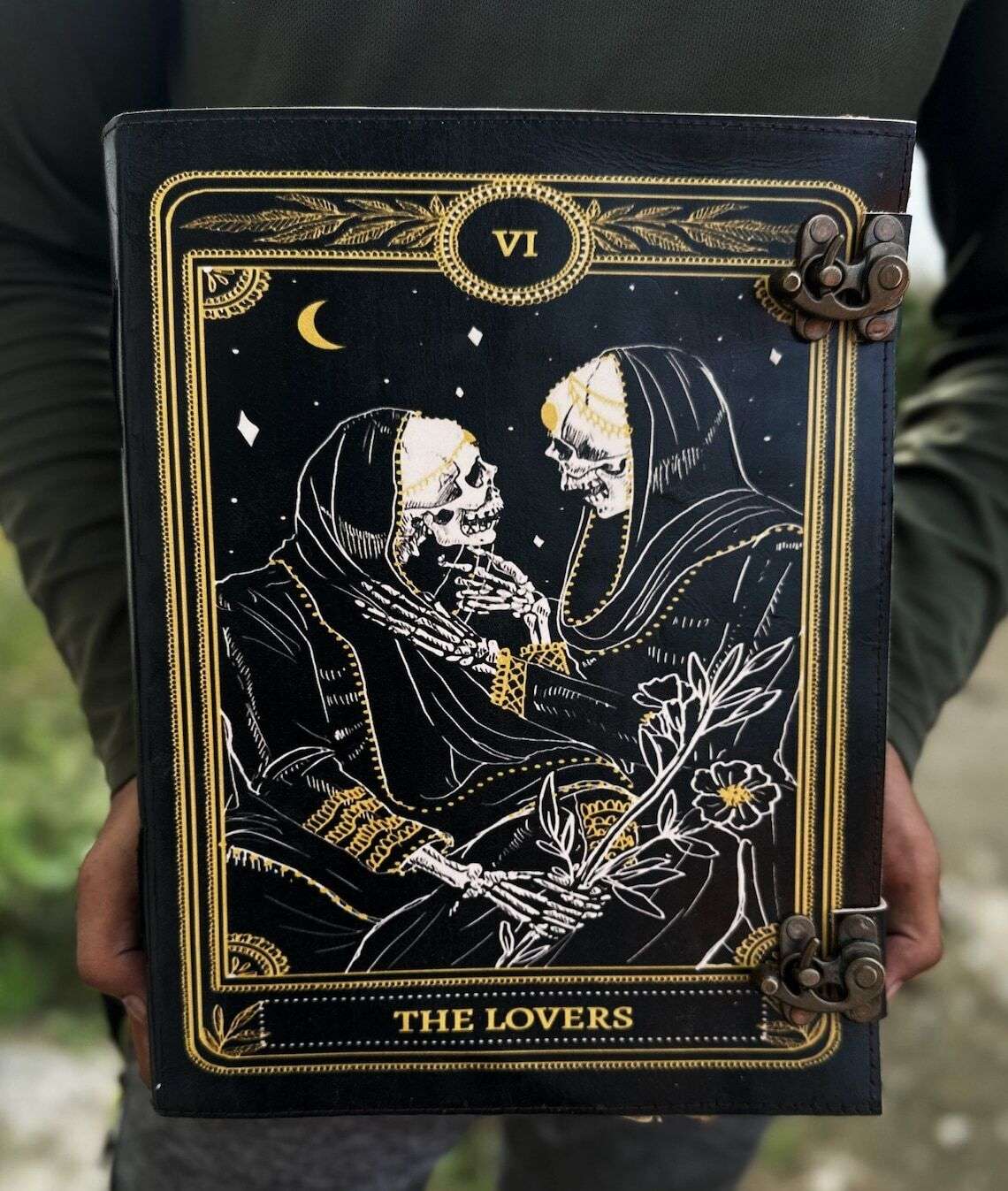 vintage handmade leather journal. Crafted with genuine leather, it radiates authenticity and charm, perfect for those who appreciate classic craftsmanship. The premium antique lock closure adds a touch of elegance and security, ensuring your thoughts and memories are safeguarded within its pages. Inside, you’ll discover 200 brown handmade pages, providing ample space for your musings, sketches, and stories to unfold. Whether it’s for journaling, sketching, or planning, this versatile journal is a timeless companion for your creative endeavors. Treat yourself or a loved one to this exquisite piece, a celebration of tradition and creativity
